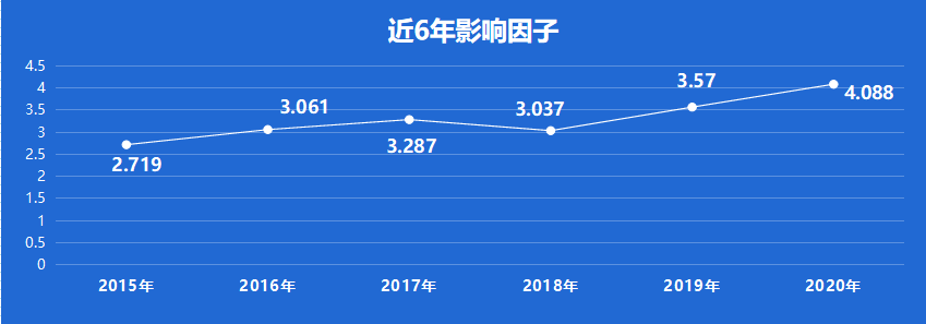 Digestive and Liver Disease,ISSN:1590-8658,E-ISSN:1878-3562,2000年创刊,出版国家:美国;由ELSEVIER出版。近6年影响因子整体呈上升趋势,2015年影响因子为2分+,2016年开始上涨至3分+,2020年影响因子为:4.088;即时因子为4.692。